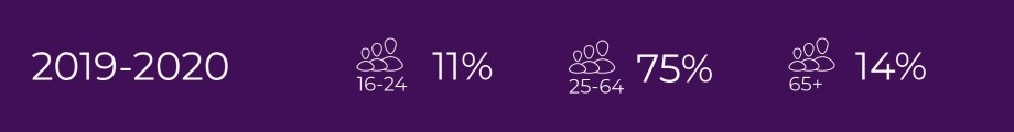 - In 2019-2020 there are 15,015 learners within the working age group (16-64 years old), which is 86% of all learners.