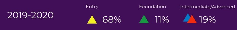 - In 2019-2020 68% were at Entry level. 11% were at Foundation level with 19% at Intermediate or Advanced levels (including Proficiency).