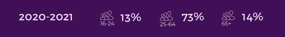 - In 2020-2021 there are 12,795 learners within the working age group (16-64 years old), which is 86% of all learners.