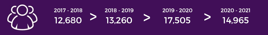 - In 2020-2021 there were 14,965 unique learners, a reduction of 15% compared to 2019-2020